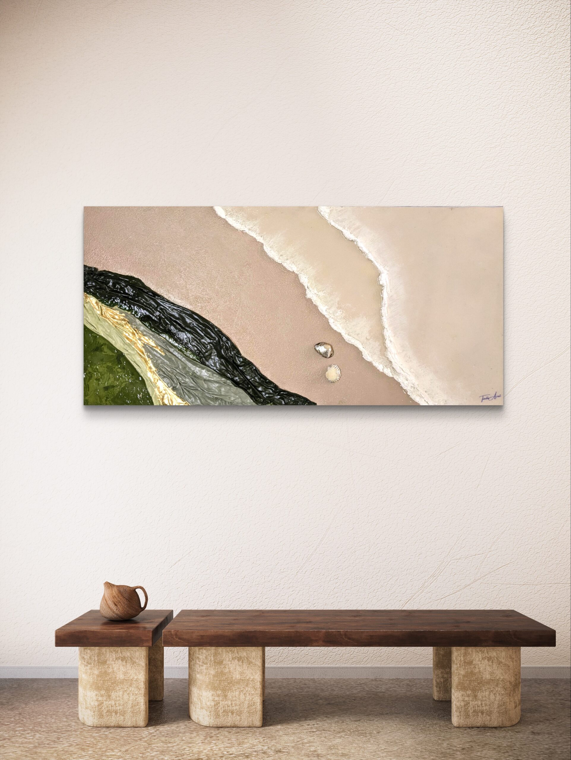 Description: A tranquil beachscape combining 3D coastal hills and resin waves to enhance the water element.