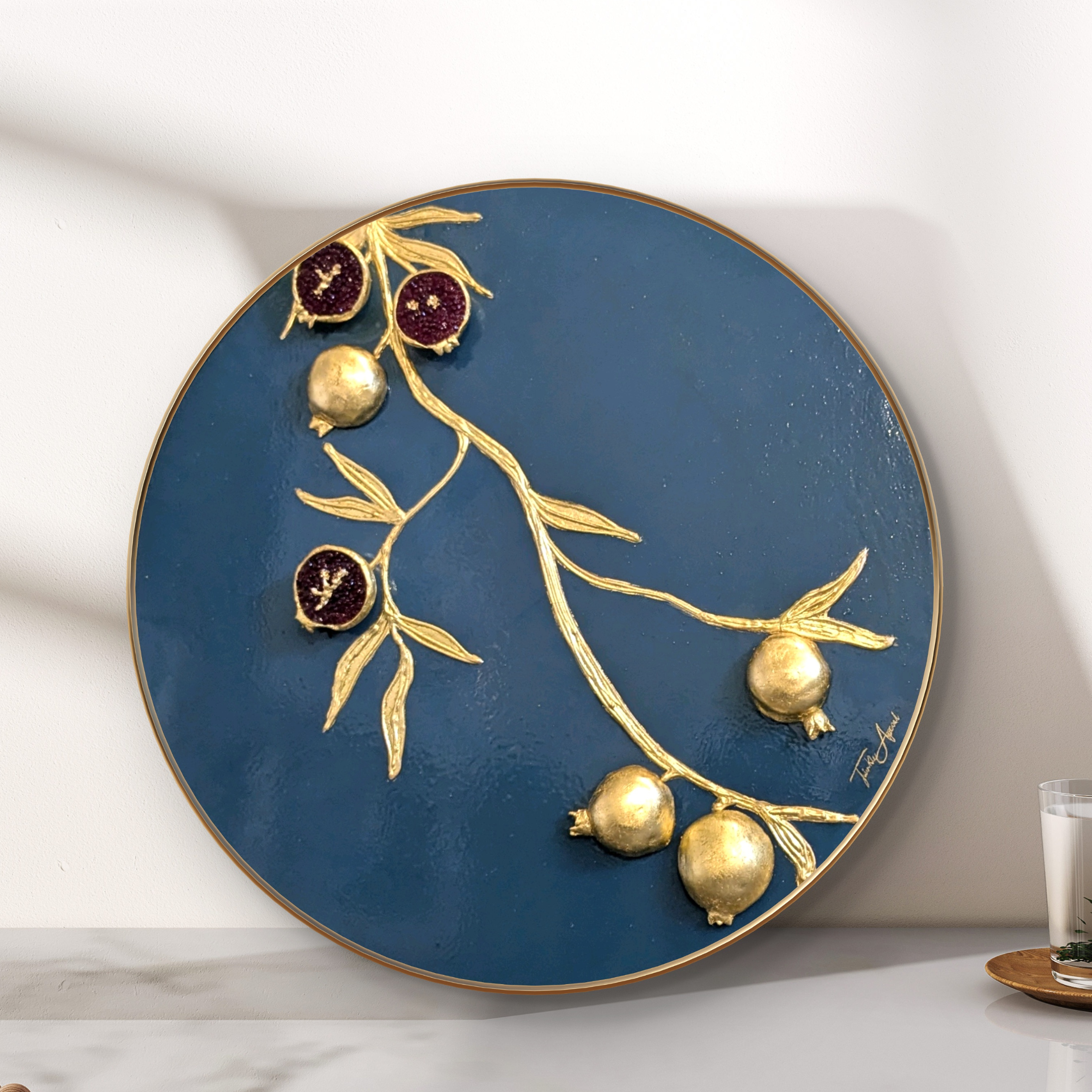 Description: A golden pomegranate vine with red crystal fruits, representing health, fertility, and richness.