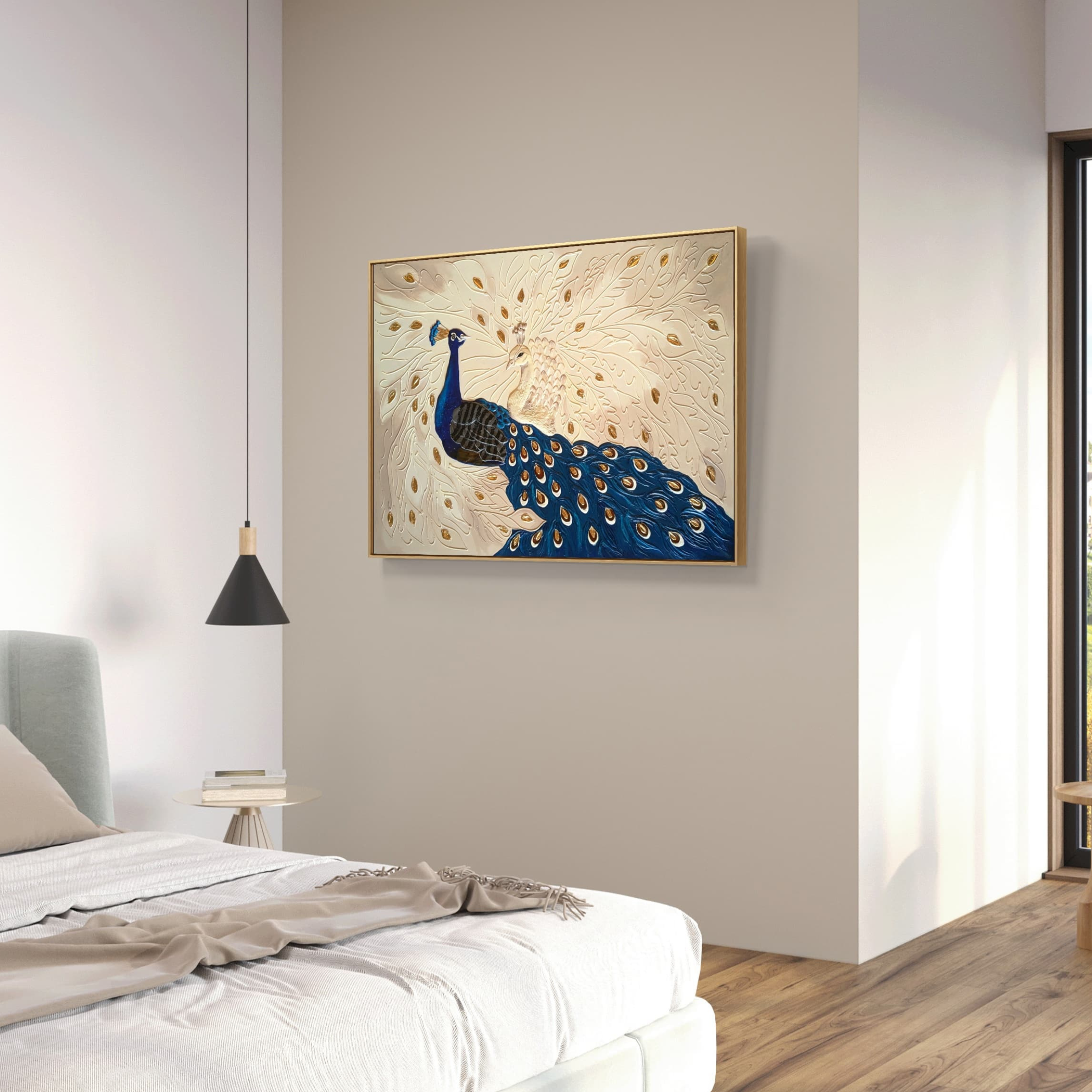 Description: A serene pair of peacocks in cool tones, bringing balance and elegance to the private space.